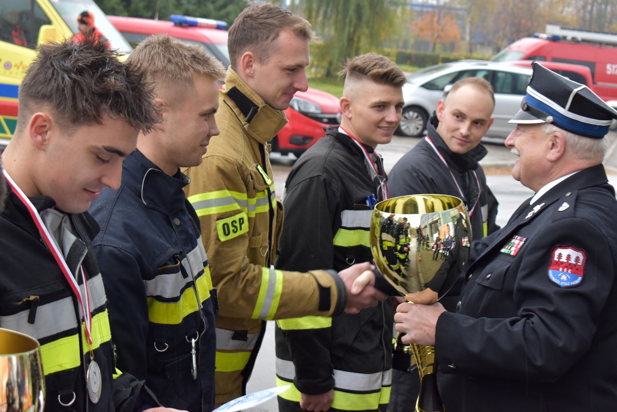 Wszystkim gratulujemy umiejętności, kondycji, uporu i ambicji w jak najszybszym dotarciu w pełnym rynsztunku (w maskach, aparatach, połączeni 3-metrową linką, w umundurowaniu do prowadzenia działań ratowniczo-gaśniczych) z parteru po schodach na 11. piętro wieżowca przy ul. Chemików. Organizatorem zawodów była OSP Oświęcim.