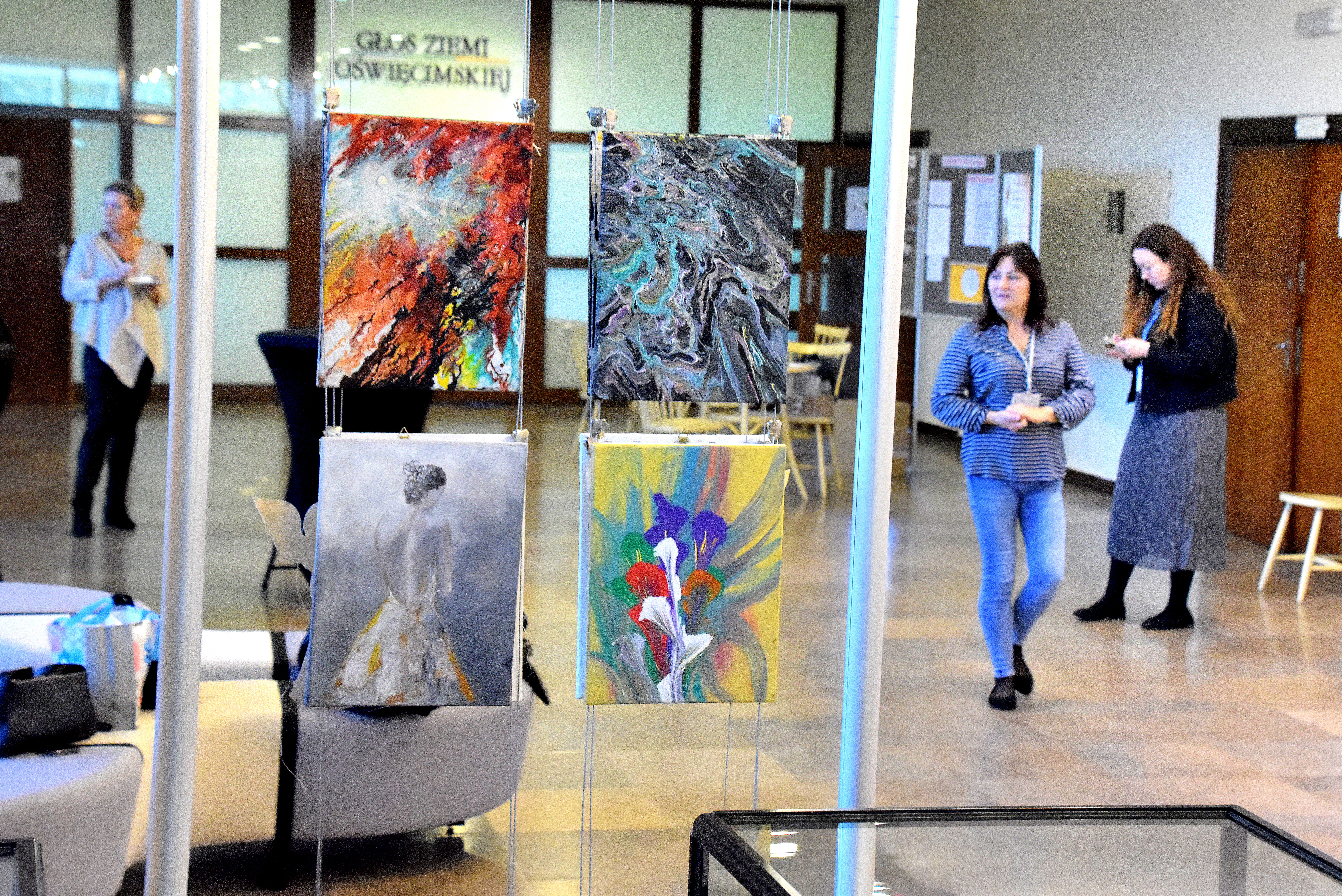 W holu OCK goście mogli obejrzeć prace wykonane przez uczestników zajęć terapeutycznych Fundacji PrzytulJa.