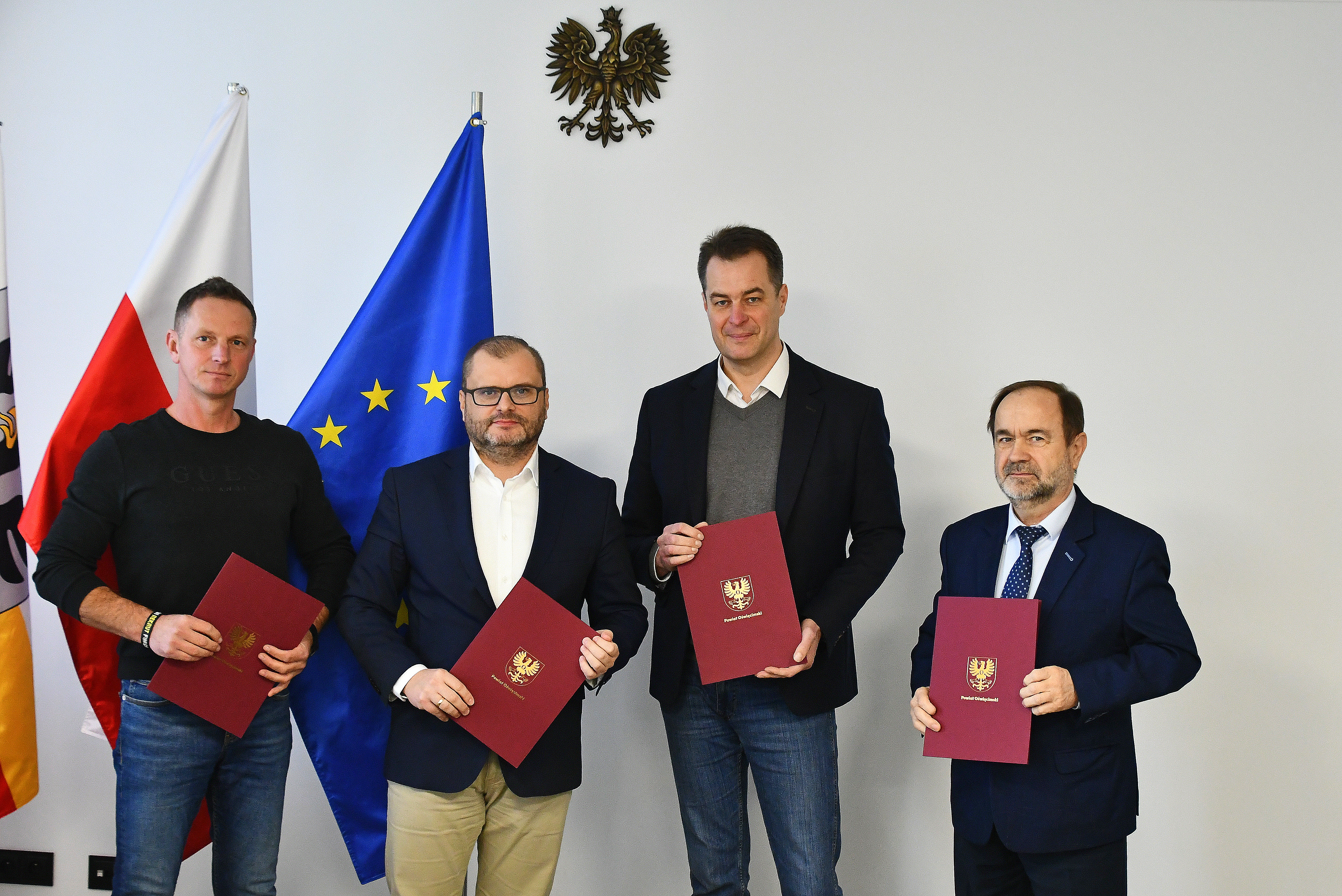 Dziś w Starostwie Powiatowym w Oświęcimiu podpisano umowę na realizację zadania. W podpisaniu dokumentów uczestniczyli starosta Andrzej Skrzypiński, członek zarządu powiatu Jerzy Mieszczak, burmistrz Kęt Marcin Śliwa oraz przedstawiciel Firmy Usługowo-Handlowej „Walek” z Żarek.