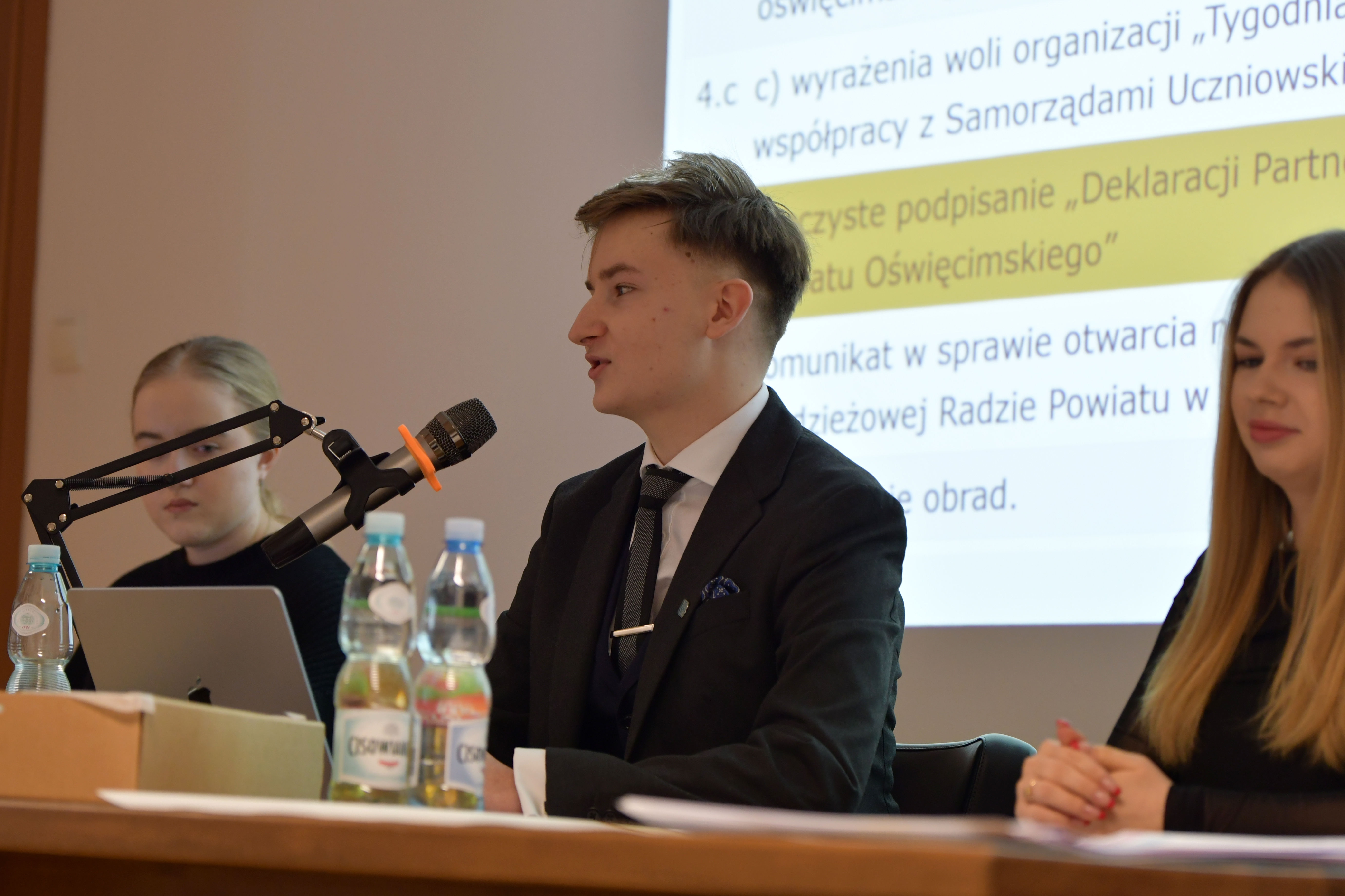 Za zaproszenie na sesję osobiście podziękował starosta oświęcimski Andrzej Skrzypiński. Podkreślił on znaczenie Młodzieżowej Rady Powiatu, gratulując jej członkom aktywności oraz zaangażowania w działania na rzecz rówieśników. Do słów uznania dołączyła również wicestarosta Teresa Jankowska.